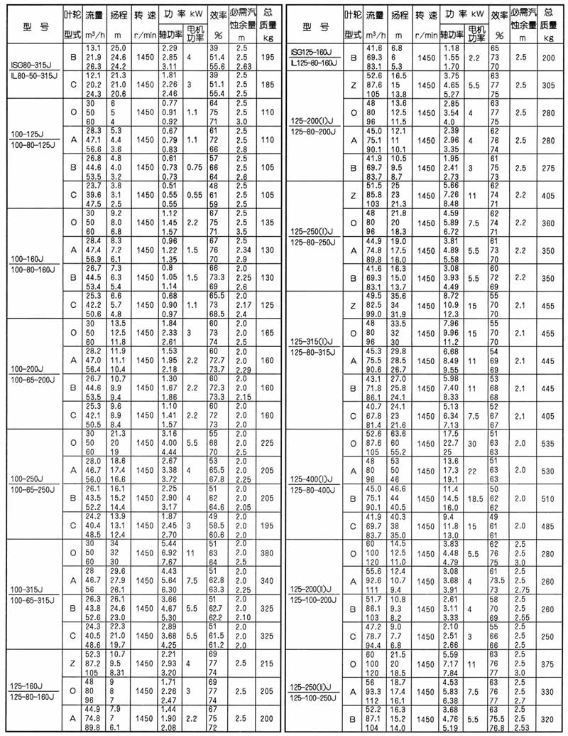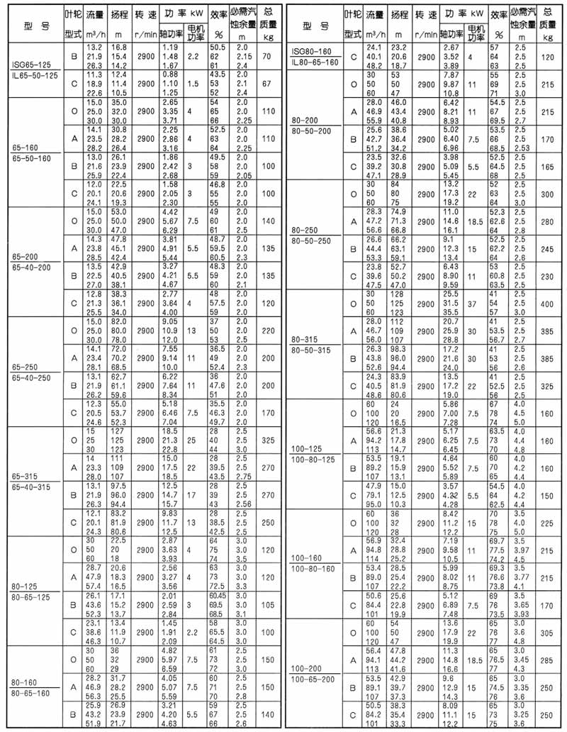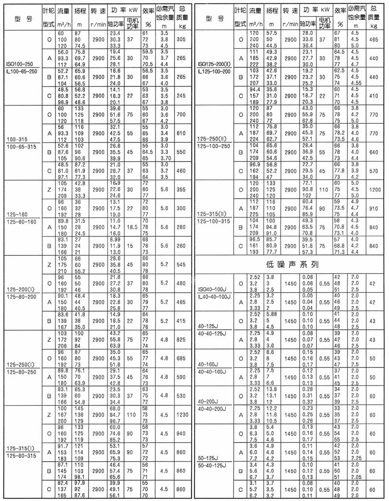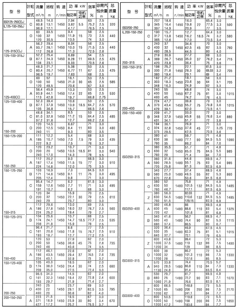口徑125的ISG型泵,有兩種流量範圍,我(wǒ)們在(zài)型號後加(1)和(II)以示區別,如流量160m/h:ISG125-250(1);流量200m3/h:ISG125-250(1I)。