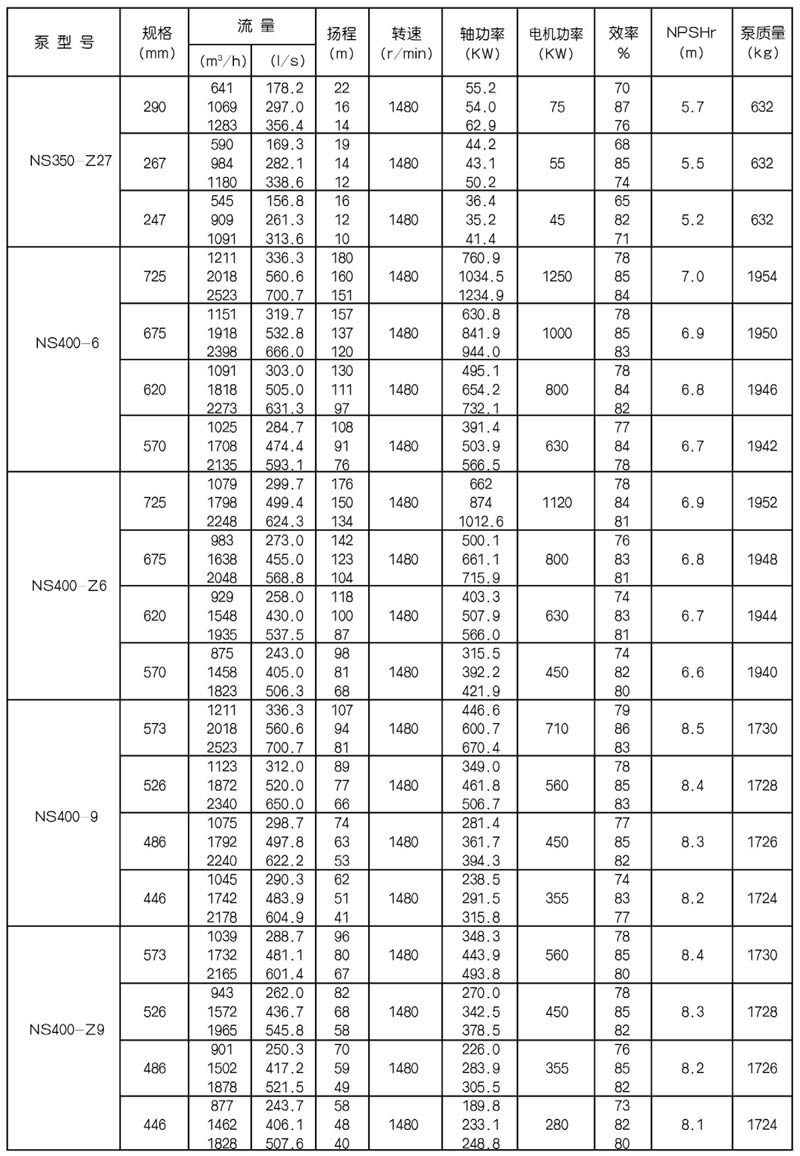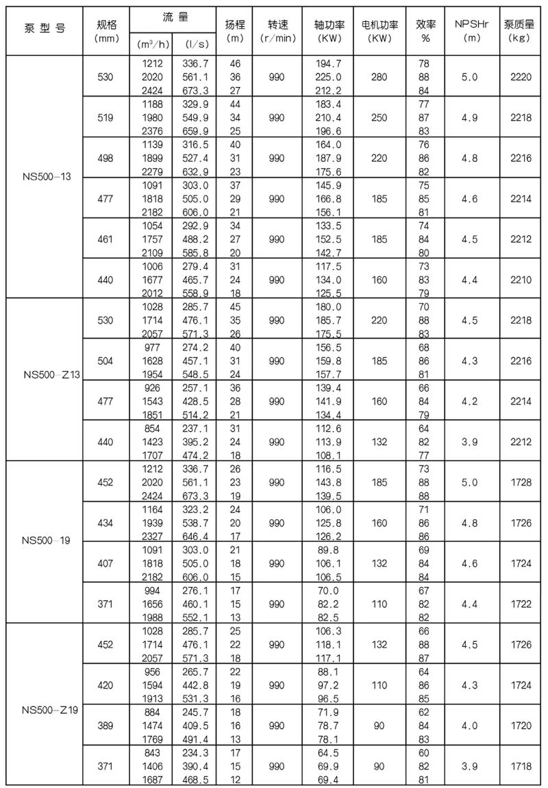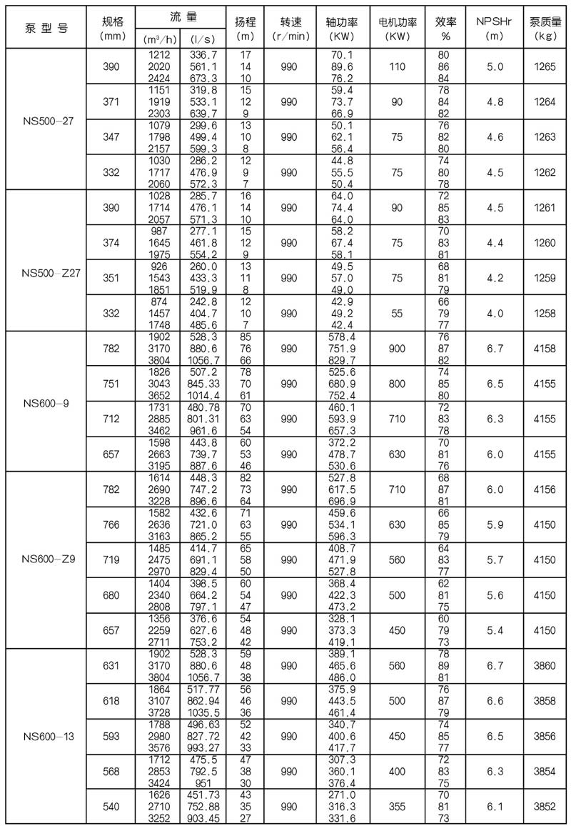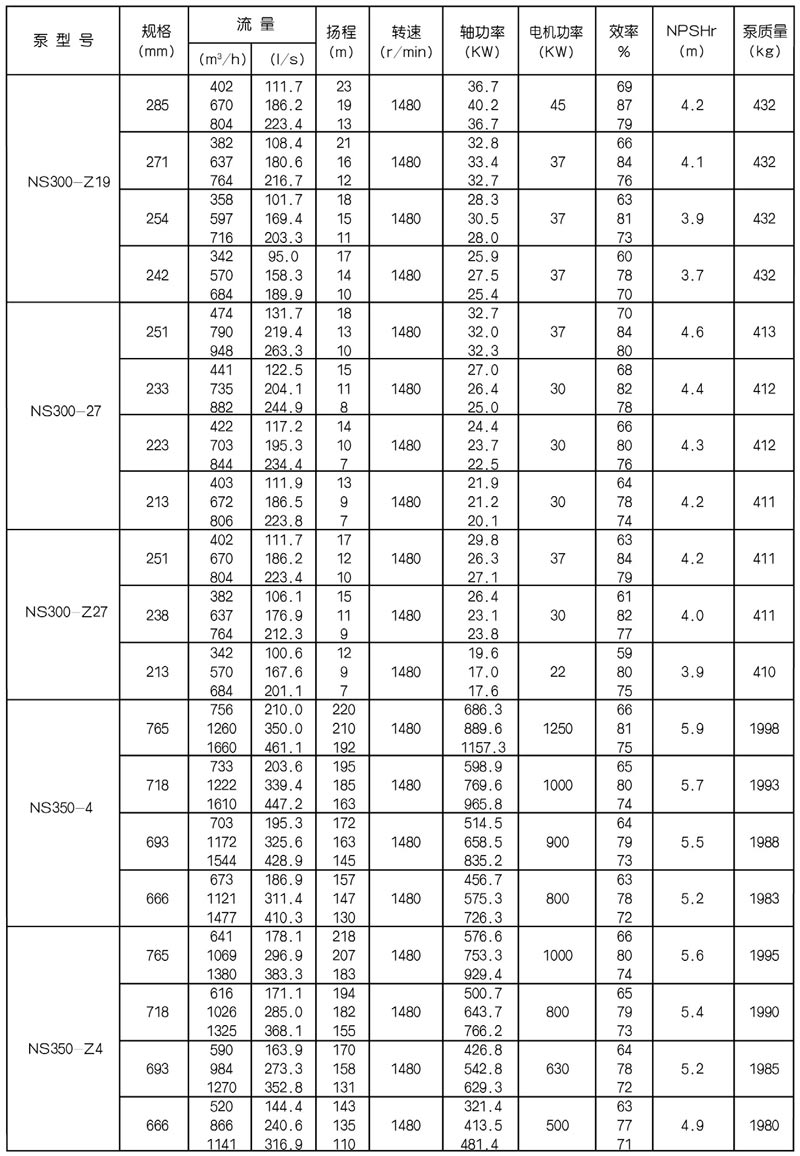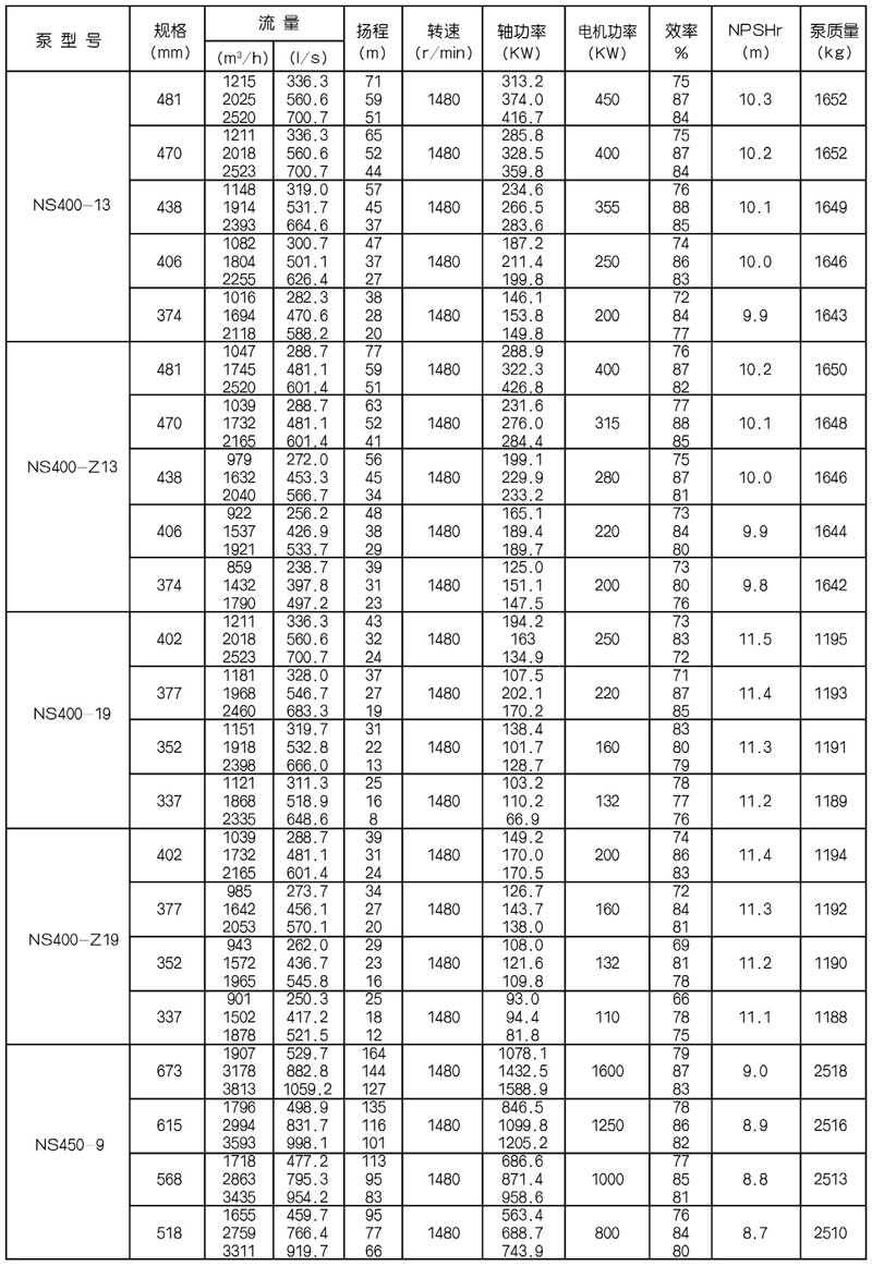 NS型單級(jí)雙吸中(zhōng)開式(shì)離心泵是我公司總結國內外優秀水力模型,廣泛吸收國內外同類產品先進的設計製造技術,根據國內市場實際需要開發的新型中開式雙吸(xī)泵。全係列泵型譜內各型號規劃更加科學合理,高揚程雙吸(xī)泵可以代替(tì)部分(fèn)多級泵,大流量雙吸泵可以(yǐ)代替部(bù)分混流泵,優化匹配各水力尺寸,汽蝕和效率兼顧,滿足GB/T19762能效評價值,達到節能目標。結構再創新,運轉可靠維護方便、延長使用壽命,使中(zhōng)開式雙吸離心泵優秀泵型發揮更大效益。我公司目前生產的雙吸泵有46種型號,390個規格,處於節能和使用性能範圍考慮,一個(gè)型號有兩種葉(yè)輪,叫標(biāo)準葉輪和窄(zhǎi)葉輪(lún),以(yǐ)更(gèng)優性能滿足使用工況要求。本係列泵符(fú)合ISO2548C、GB3216、GB/T5657標準。