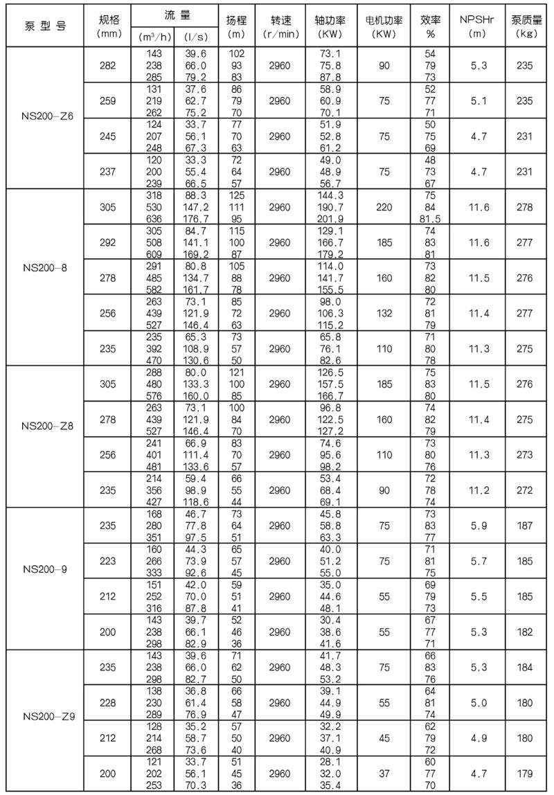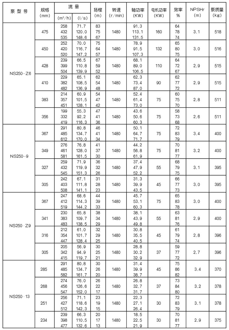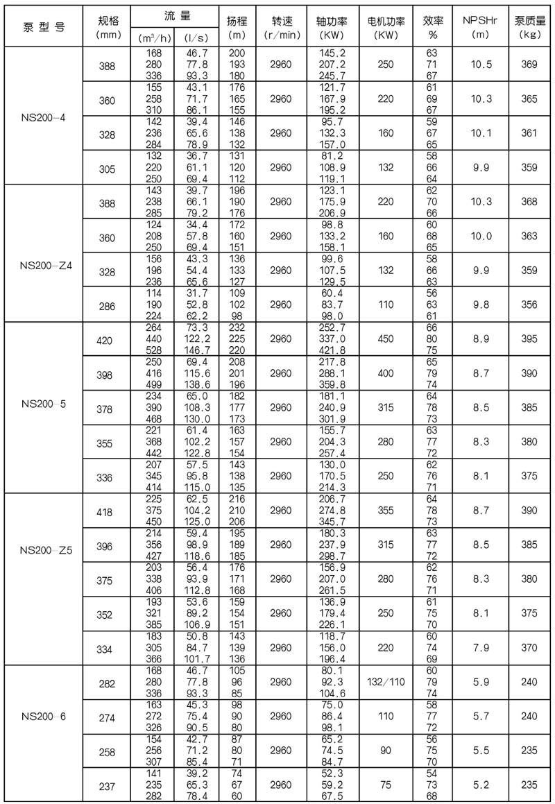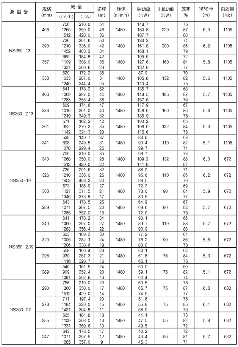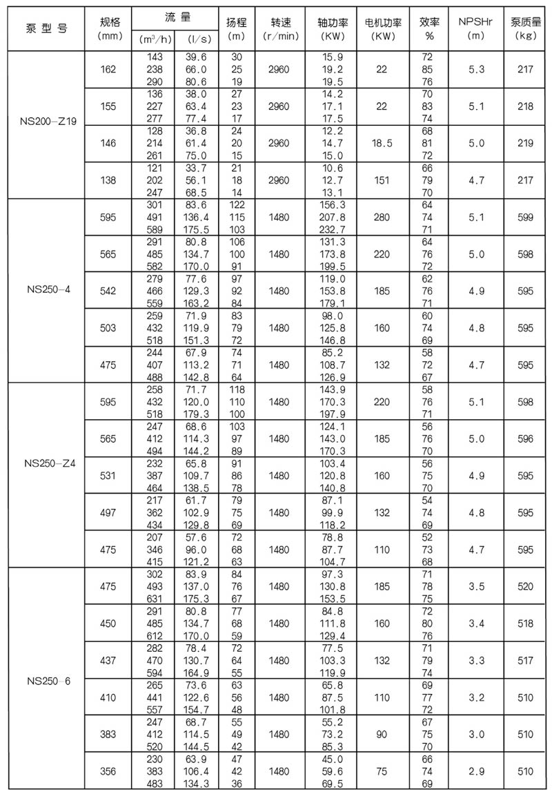 NS型單級(jí)雙吸中(zhōng)開式(shì)離心泵是我公司總結國內外優秀水力模型,廣泛吸收國內外同類產品先進的設計製造技術,根據國內市場實際需要開發的新型中開式雙吸(xī)泵。全係列泵型譜內各型號規劃更加科學合理,高揚程雙吸(xī)泵可以代替(tì)部分(fèn)多級泵,大流量雙吸泵可以(yǐ)代替部(bù)分混流泵,優化匹配各水力尺寸,汽蝕和效率兼顧,滿足GB/T19762能效評價值,達到節能目標。結構再創新,運轉可靠維護方便、延長使用壽命,使中(zhōng)開式雙吸離心泵優秀泵型發揮更大效益。我公司目前生產的雙吸泵有46種型號,390個規格,處於節能和使用性能範圍考慮,一個(gè)型號有兩種葉(yè)輪,叫標(biāo)準葉輪和窄(zhǎi)葉輪(lún),以(yǐ)更(gèng)優性能滿足使用工況要求。本係列泵符(fú)合ISO2548C、GB3216、GB/T5657標準。