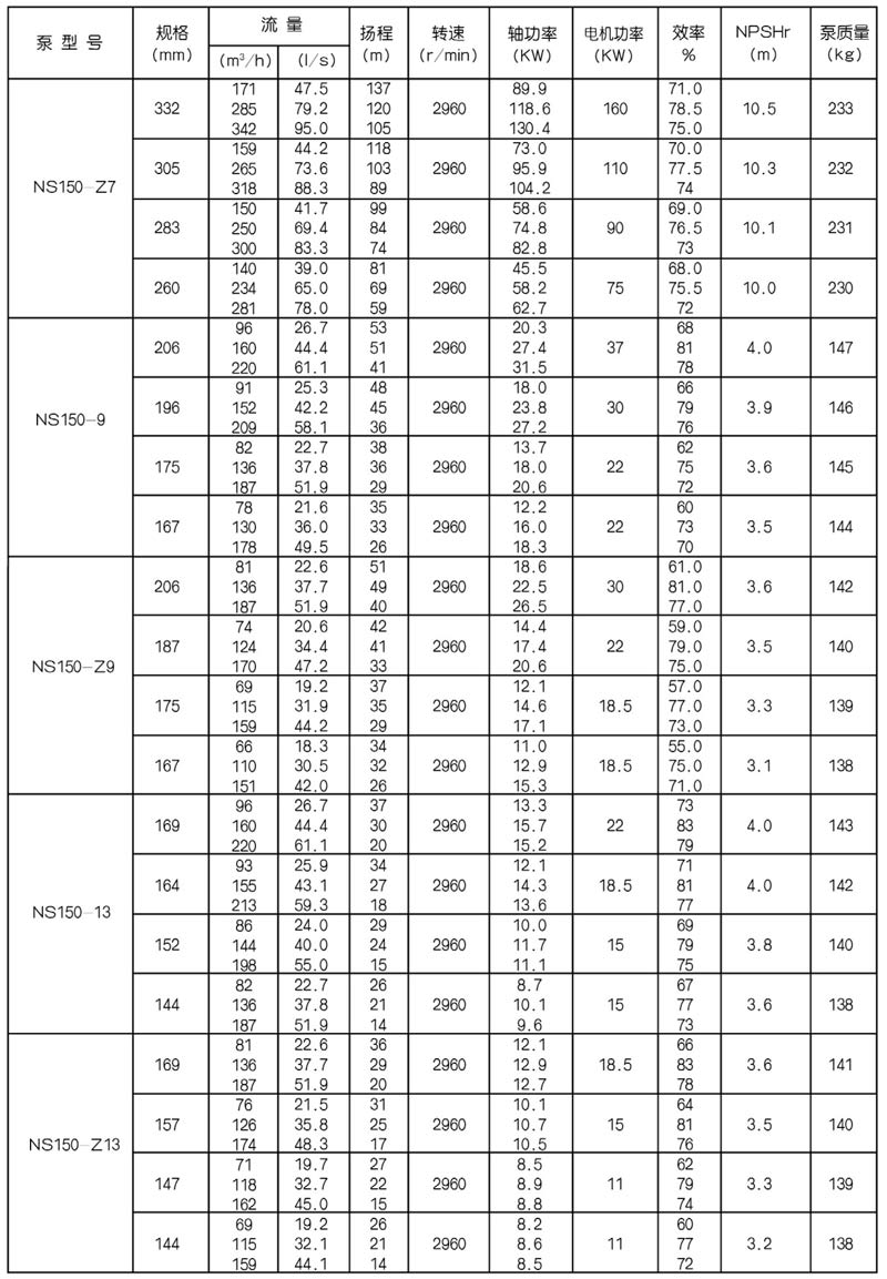 4···················水泵葉輪名義比(bǐ)轉數的1/10,Z一窄葉輪,無乙為標準葉輪